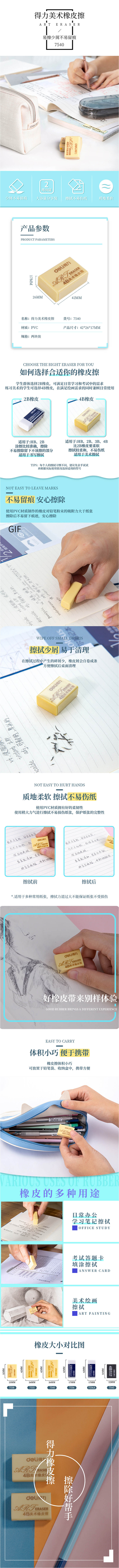 得力7540黄色橡皮,少屑不易留痕,擦拭不易伤纸,质地柔软。